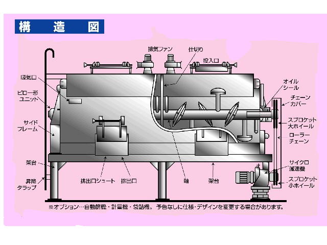 | 型 式 | 1日最大処理量 | 動 力 | 外形寸法 (mm) | 機械重量 | |||